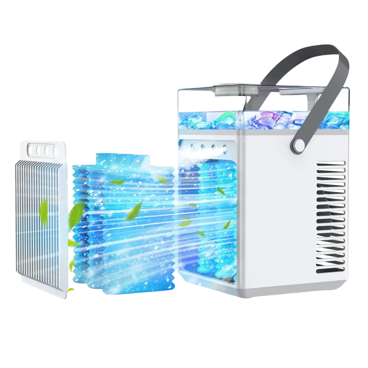 Små portabla luftkylare – perfekta för skrivbord eller en person.